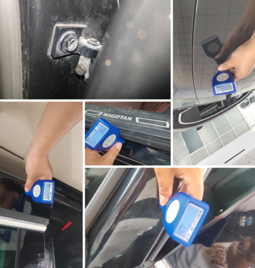 没想到接下来还有“惊喜”左后门更换,B柱腻子修复,车顶腻子修复,左后底边梁内侧喷漆修复。